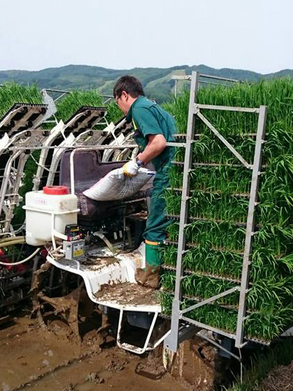 - もち米の種まき。